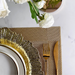 Transform your Christmas table with our stunning golden charger plates. Featuring a textured rim reminiscent of a flower, use these decorative base settings instead of traditional placemats, and make your next celebration a magical one! These are also uniquely ideal for catered events, weddings, upscale parties, banquets, or in any fine dining setting.