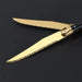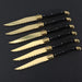 The perfect knife for your next upscale dinner. The timeless Laguiole style black handle perfectly showcases the titanium plated gold blade that will elevate any table setting. This set of steak knives also makes a unique and thoughtful gift for the hostess with the mostest.